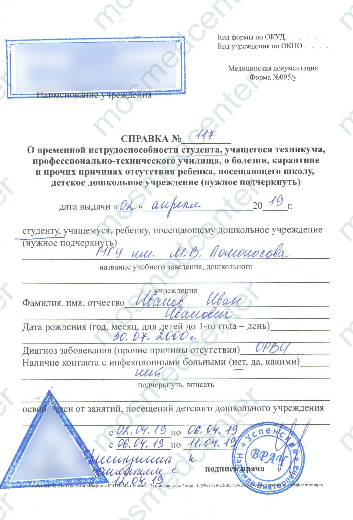 Купить справку 095/у в Москве